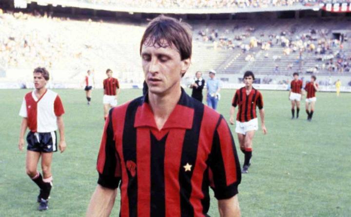 见过克鲁伊夫身披米兰球衣的样子么?1981年,当时还是米兰电视频道老板的贝卢斯科尼在圣西罗举办了一场带有表演性质的邀请赛,参赛的每家俱乐部还能“借用”两名非本队球员进行比赛,荷兰、巴萨传奇克鲁伊夫就这样成为了米兰那一天的头号球星,当时他身穿的也正是这件印有小恶魔队徽的红黑战袍。
