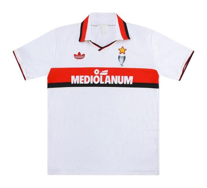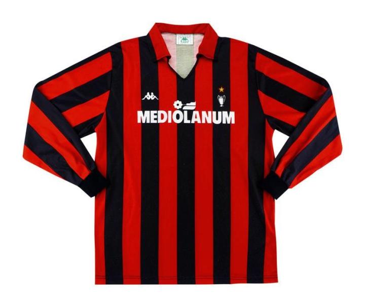 这种情况直到80年代至90年代初,球衣及胸前广告赞助商的出现才相对有所改观。欧冠两连霸时期,米兰主客场球衣的赞助商是我们熟知的意大利品牌Kappa,胸前广告商是意大利的麦迪拉侬银行(Mediolanum),麦迪拉侬同时也是米兰城历史上的早期称谓,放在米兰的球衣上,显得画风也对了味。