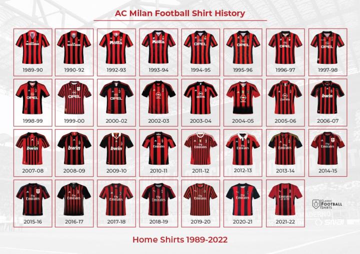 1989-2022年的米兰主场球衣,宽窄不一的红黑间条在今年的球衣上首次出现,也是一种别样的创新了