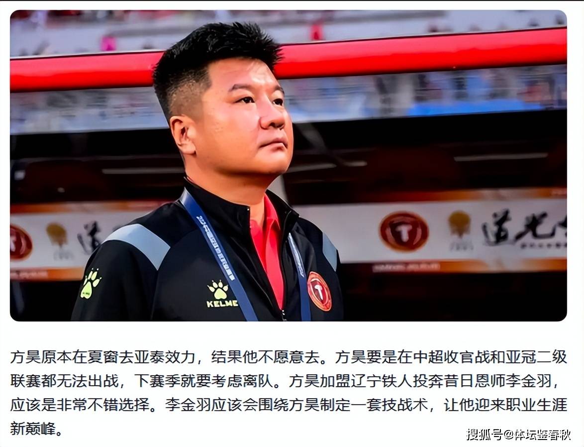 而近期,坊间也传出了方昊下赛季将离队的消息。据一些体育媒体透露,方昊明年很有可能将被租借给中超升班马——辽宁铁人队,投奔昔日在国青队的恩师李金羽。虽然这个消息并没有得到证实,但对于正值当打之年的方昊来说,到一支中下游水平的球队发展,未尝不是一件好事。