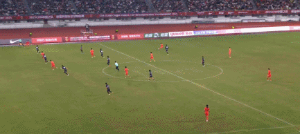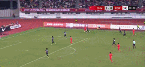 不过,韩国队也不是没有反击的能力,第 45 分钟,徐彬在后场传球时出现了失误,球传得过于轻,韩国队的金龙鹤断球后形成单刀。全场观众都紧张得屏住了呼吸,还好金龙鹤太着急,带球稍微拖大了一点,中国队才侥幸逃过一劫。这一幕也提醒了中国队,防守端不能掉以轻心。