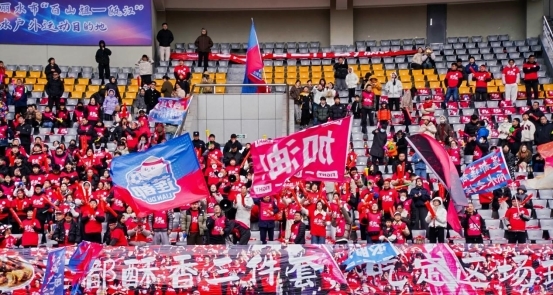 “战斗吧,我的兄弟,胜利属于莲都!无所畏惧,血战到底,捍卫莲都的荣誉!”这是“丽超”期间莲都的背景音乐,从体育场看台到开往客场的大巴,从街边小馆到短视频平台,音符化作这座城市对球队的托举。