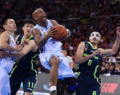 北京万事达中心3日上演了本赛季CBA联赛季后赛最精彩的对决,卫冕冠军北京队凭借朱彦西在加时赛的压哨补篮绝杀以107:105险胜广东队,以3:1的总比分淘汰对手连续两年闯进总决赛。第200场比赛,38岁,独得38分……马布里也在里程碑的夜晚创造了里程碑!图为马布里(右二)在比赛中上篮。