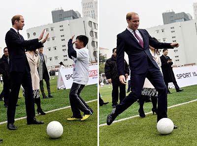 英国剑桥公爵威廉王子与青少年足球培训班学生互动 3月3日,英国剑桥公爵威廉王子来到上海南洋中学,与青少年足球培训班的学生互动。