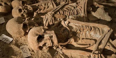法国巴黎塞瓦斯托波尔大街上有一家名为Monoprix的食品连锁超市,不久前店员准备扩建地下室时,发现地下埋着不少人骨。商店请来考古专家查看,专家先在7个墓穴中发现二十多具尸骨,紧接着又在一个稍远墓穴中发现150多具。考古专家说,从尸骨密密麻麻排列在一起的情况来推断,这些人很可能死于14到16世纪肆虐法国的瘟疫,而这么摆放或许是出于节省空间考虑。
